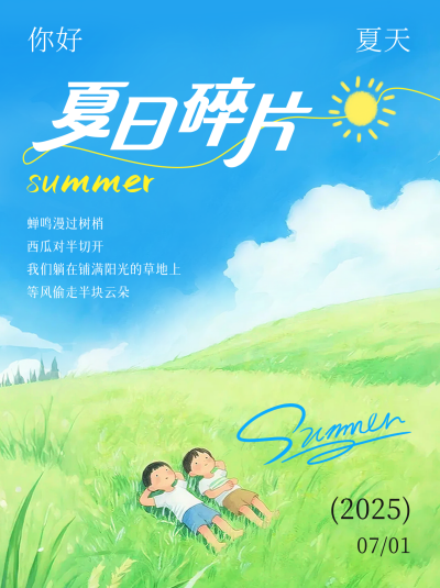 夏日文案手绘祝福小红书封面