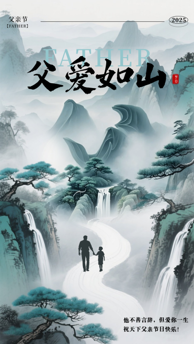 父亲节中国风山水文字祝福海报