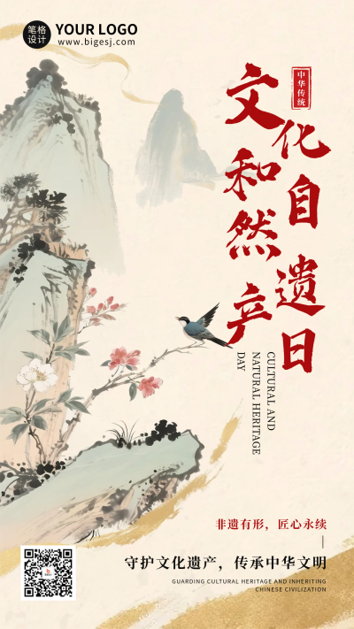 文化和自然遗产日中国风宣传海报