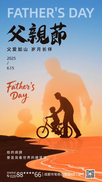 父亲节手绘剪影祝福海报