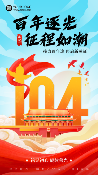 建党节祝福手绘海报