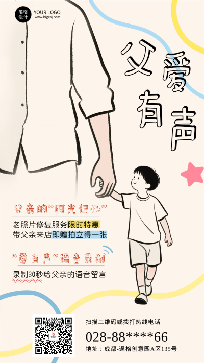 父亲节简约手绘祝福宣传海报