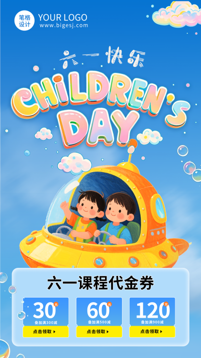 儿童节课程优惠券海报