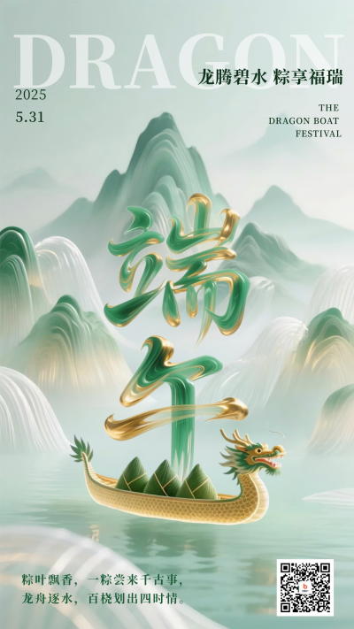 新中式端午节高端祝福海报
