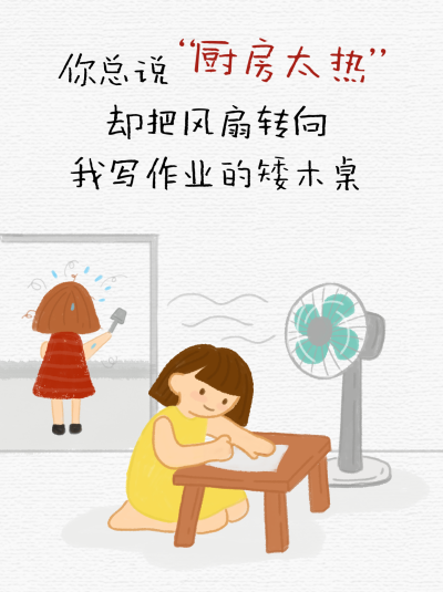 母亲节宣传女孩写作业手绘小红书封面