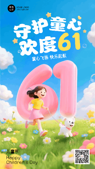 六一儿童节3D卡通祝福宣传动态海报