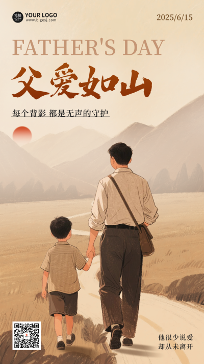 父亲节手绘怀旧风海报