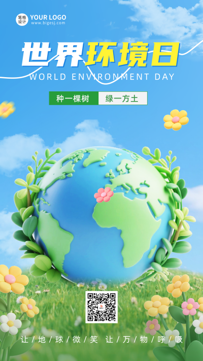 世界环境日3D祝福海报