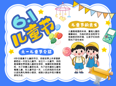 六一儿童节节日科普卡通蓝色手抄报