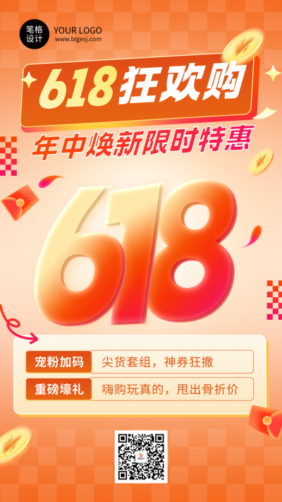 618促销活动橙色简约海报
