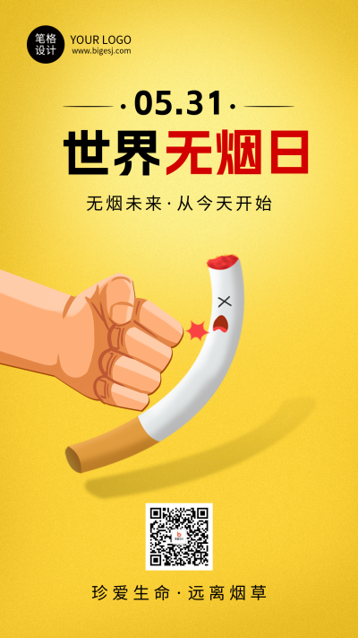 世界无烟日黄色简约海报