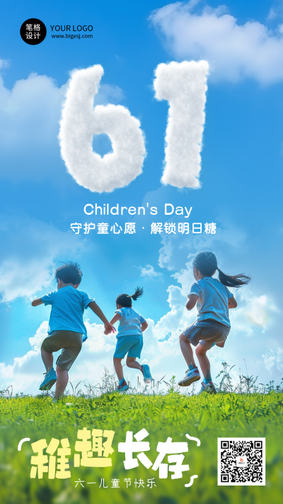 六一儿童节节日祝福简约宣传海报