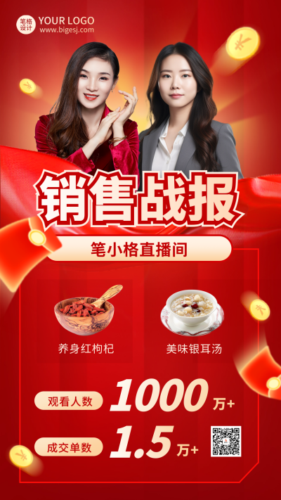 销售喜报直播业绩表彰大会红色实景海报