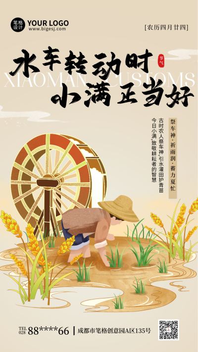 小满节气习俗科普手机宣传海报