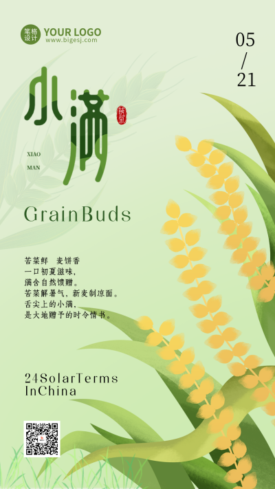 小满节气手绘宣传海报