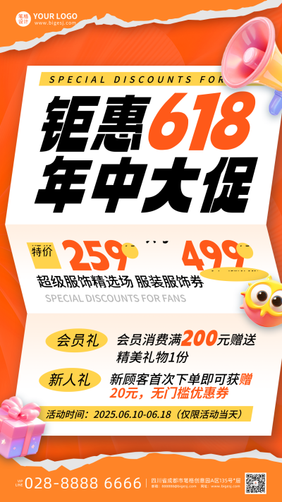 618活动促销撕纸风宣传海报