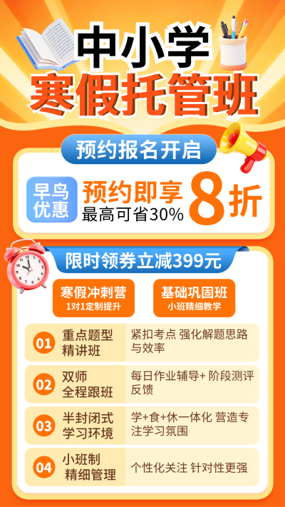 橙色简约寒假托管班宣传海报