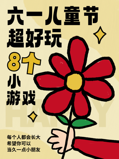 六一儿童节做游戏趣味可爱小红书封面