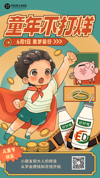 儿童节可爱手绘祝福宣传海报