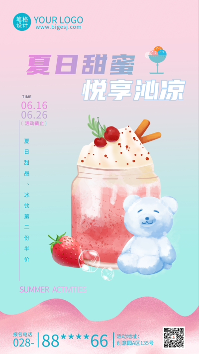 夏日冰淇淋促销活动宣传海报