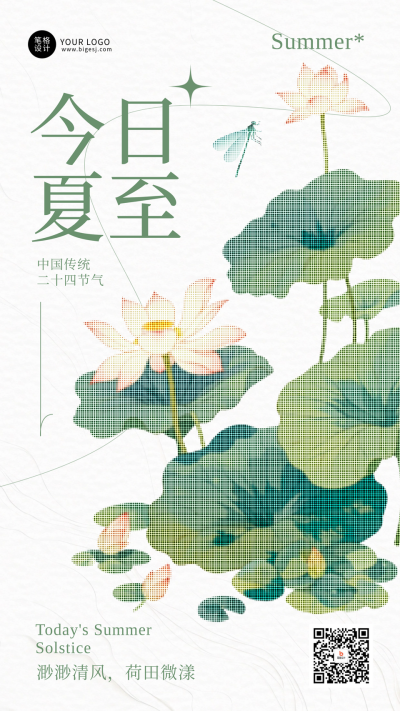 夏至节气清新手机宣传海报