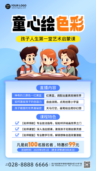 儿童节绘画班课程宣传海报