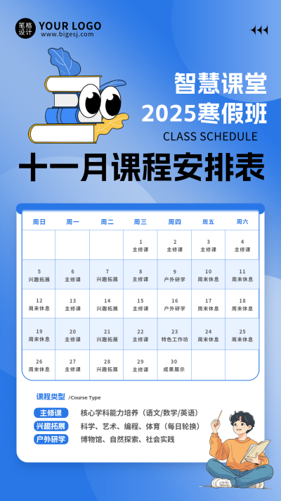 蓝色简约寒假班课程宣传海报