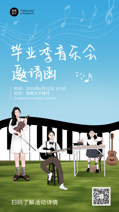 毕业季音乐会邀请函手绘宣传海报