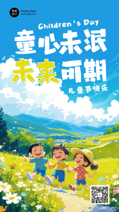 儿童节节日祝福卡通插画海报