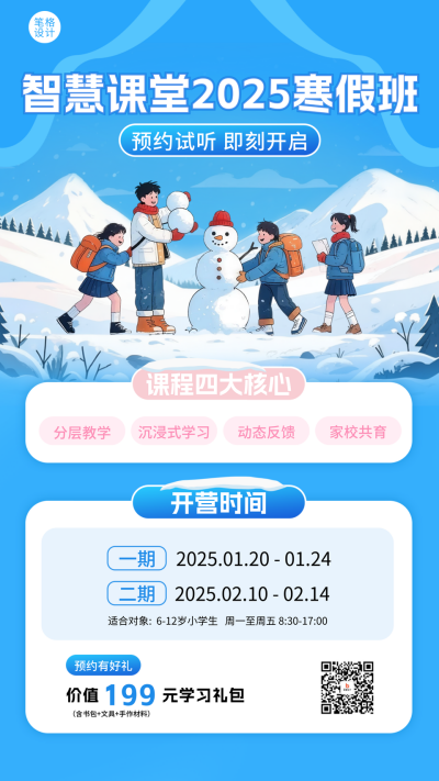 蓝色插画风寒假班宣传海报