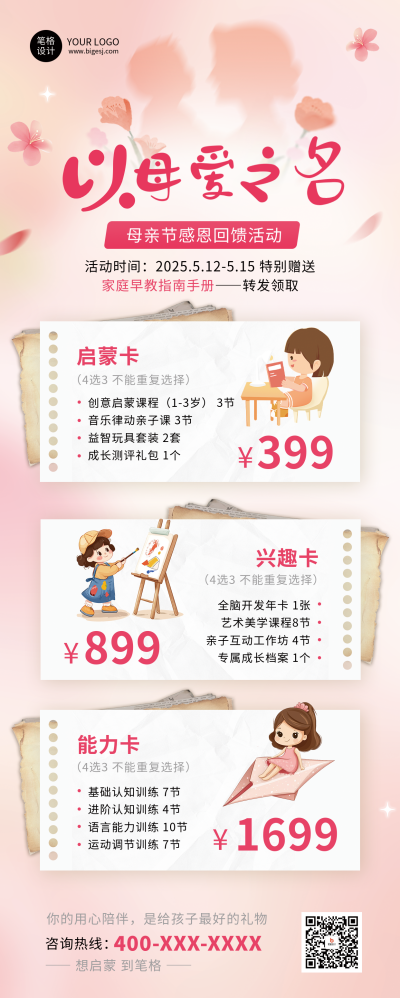母亲节亲子活动可爱手绘长图海报
