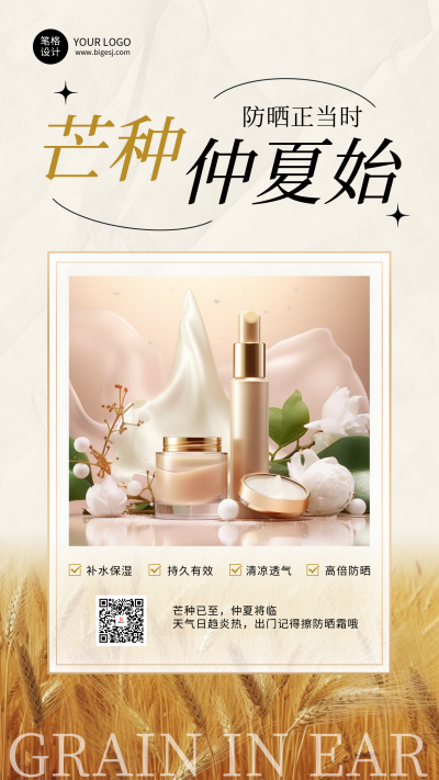 芒种节气美容护肤宣传海报