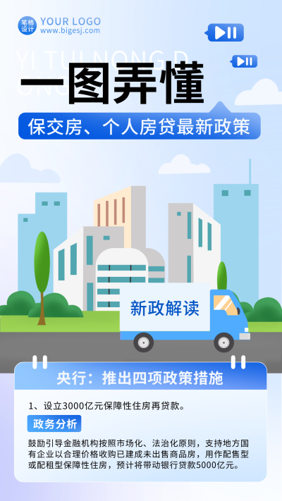 房产股市政策解读扁平宣传海报
