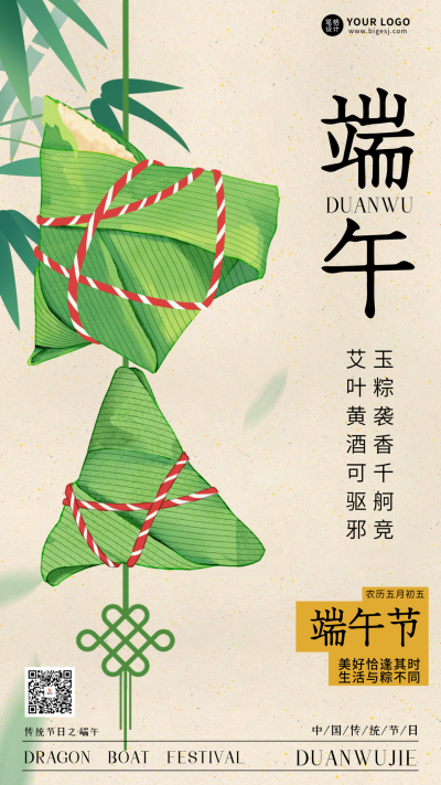 端午节手绘粽子祝福宣传海报