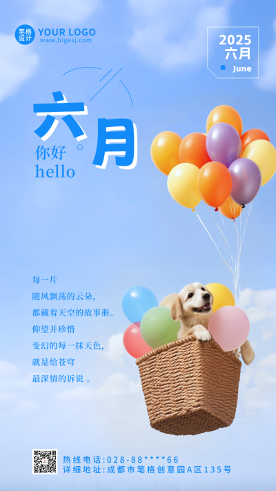 六月你好日签手机宣传海报