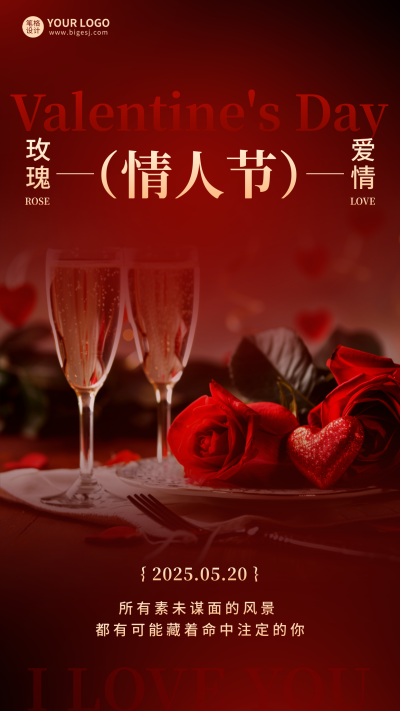 情人节节日祝福手机宣传海报