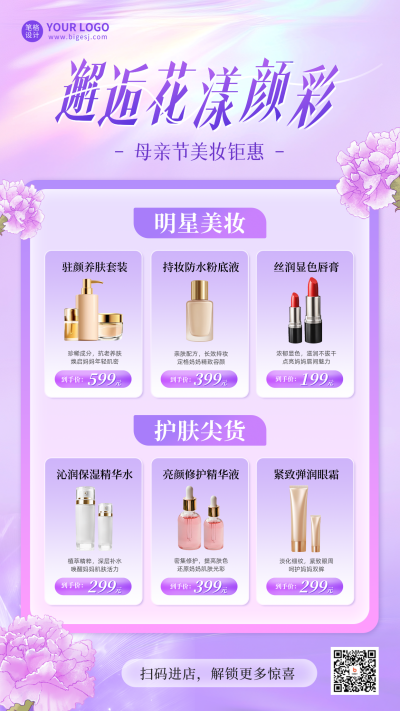 母亲节美妆活动促销海报