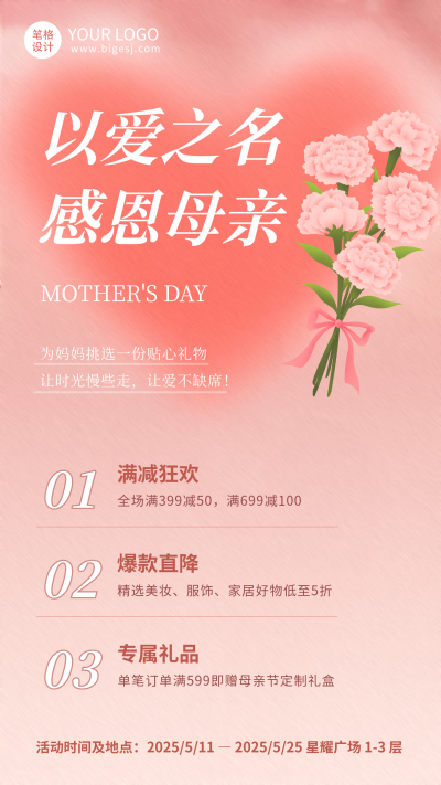 母亲节活动促销手绘宣传海报