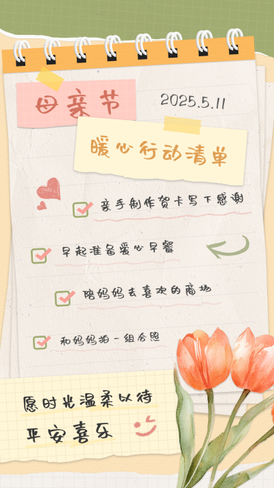 母亲节计划清单记事本手绘宣传海报