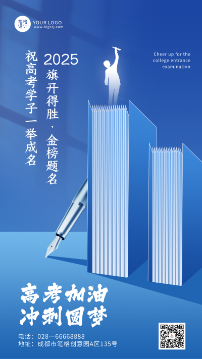 高考励志蓝色大气祝福海报