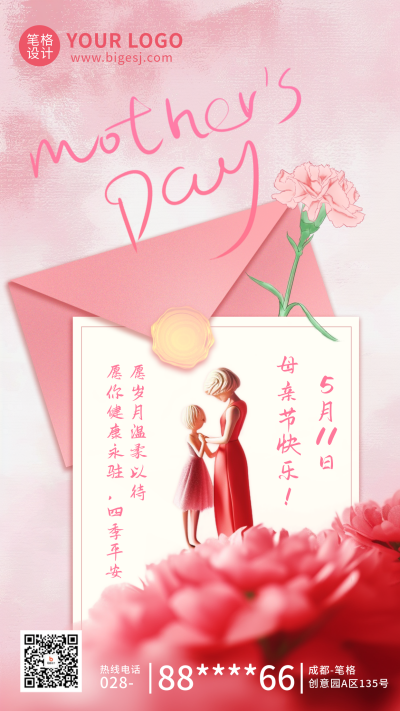 母亲节手绘信封祝福海报