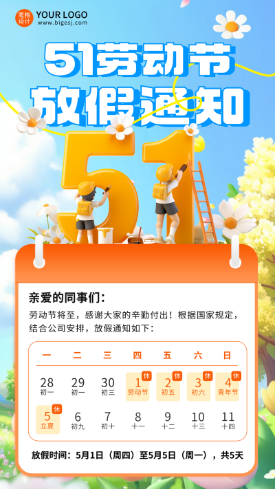 劳动节放假通知宣传海报