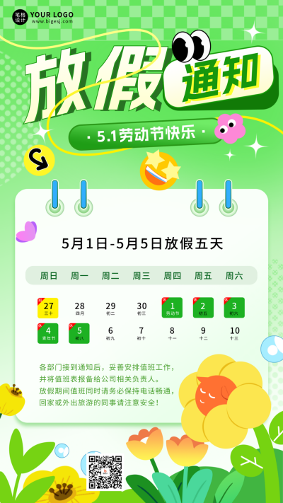 五一劳动节放假通知手绘宣传海报