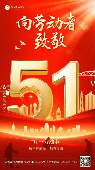 五一劳动节大气商务祝福动态海报