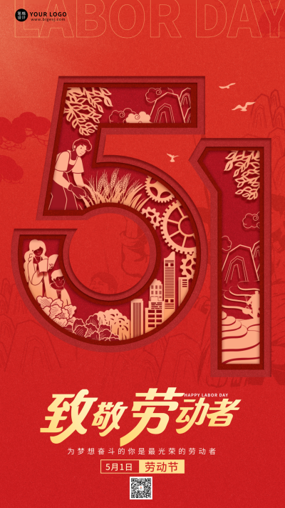 五一劳动节致敬劳动者宣传海报