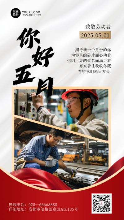 五一劳动节节日祝福简约宣传海报