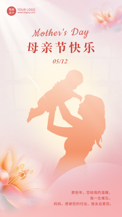 母亲节剪影手绘祝福宣传海报