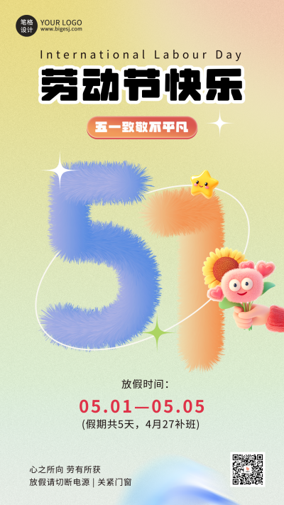 劳动节放假通知卡通手机宣传海报