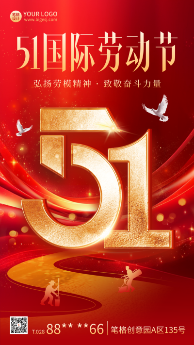 五一劳动节致敬劳动者宣传海报