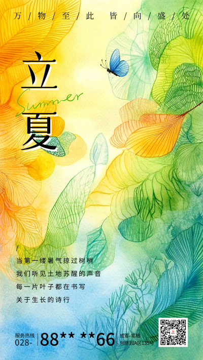 立夏节气祝福水彩风宣传海报